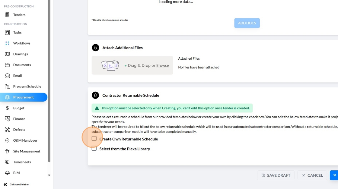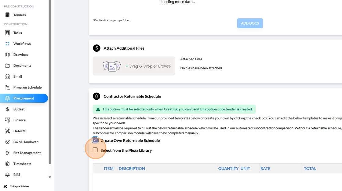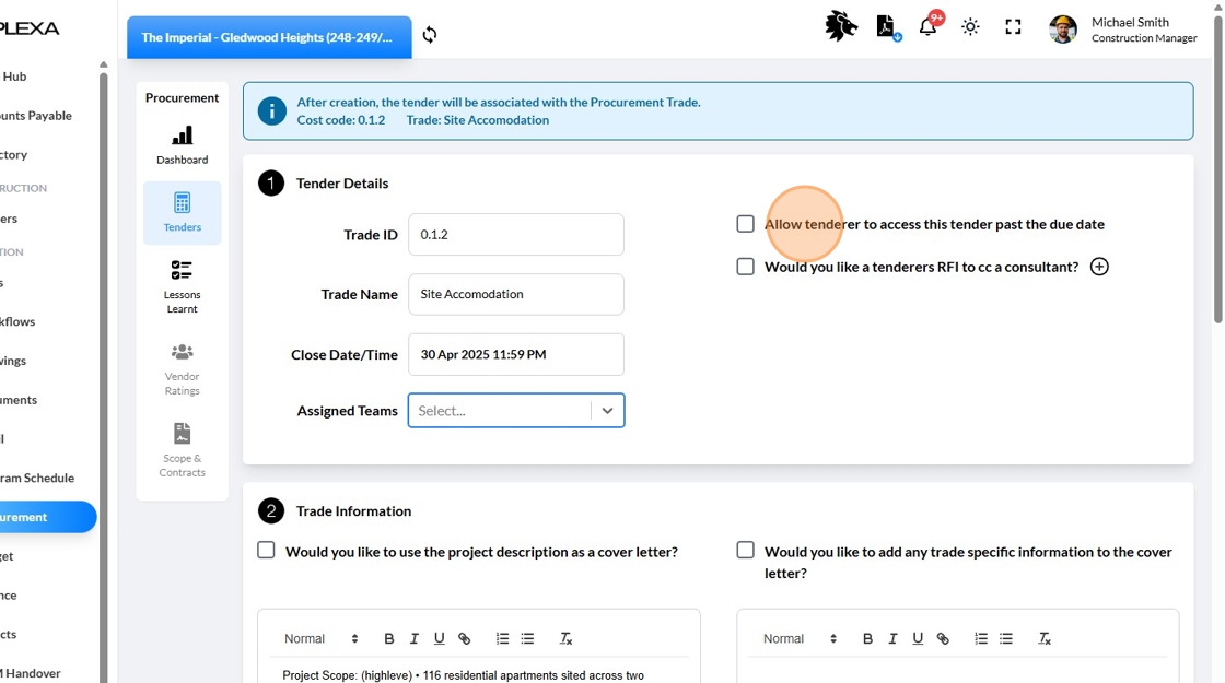 5. Click "Allow tenderer to access this tender past the due date" if required