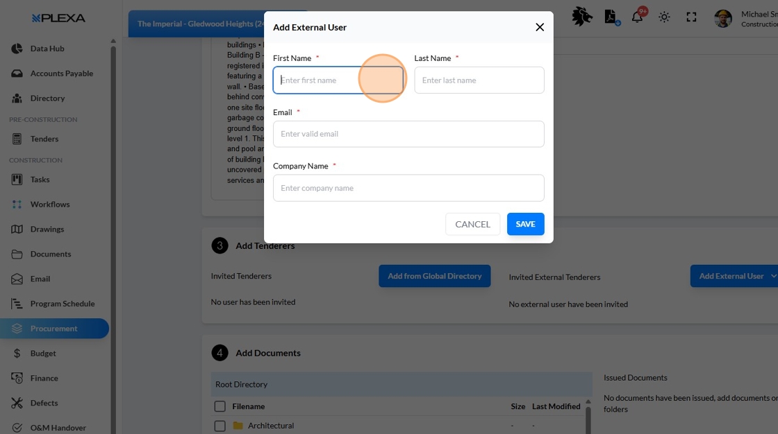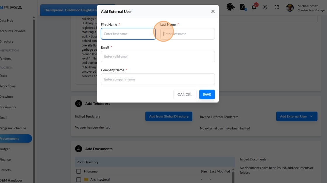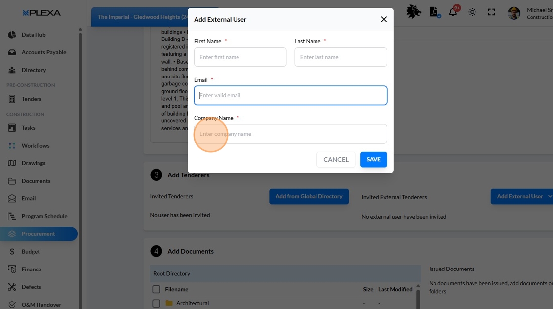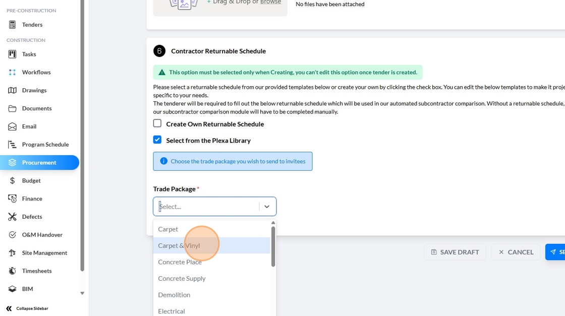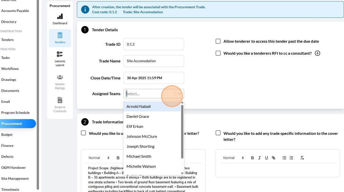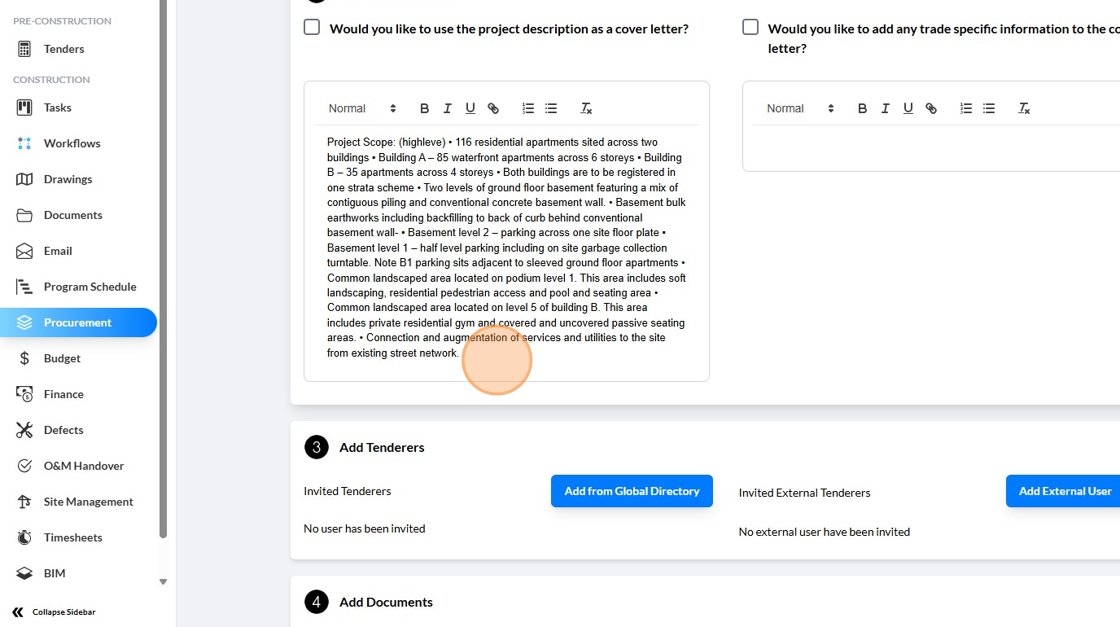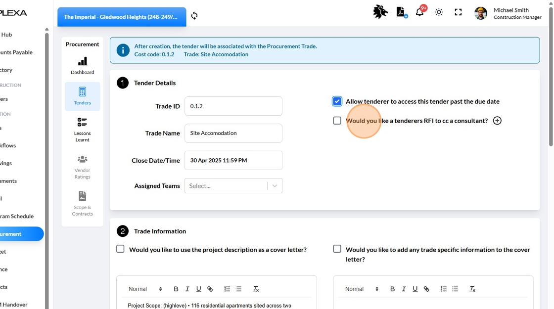 6. Click "Would you like a tenderers RFI to cc a consultant?" if required